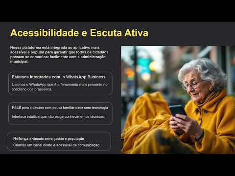 A Solução com IA: Aproxima a prefeitura do cidadão, facilitando a sua comunicação com qualquer órgão, através de um único número de WhatsApp, durante 24 horas, em dias úteis, sábados, domingos e feriados.